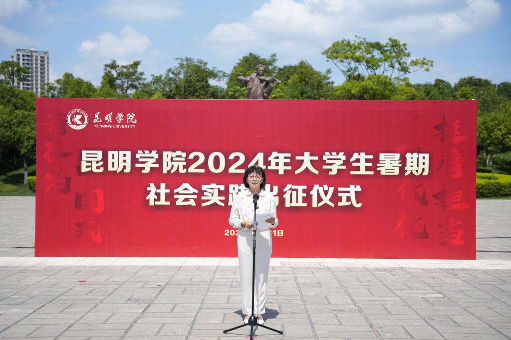 6月21日,beat365英国官方网站2024年大学生暑期社会实践出征仪式在聂耳广场举行。学校党委副书记李莉出席仪式并讲话。学校各二级学院暑期社会实践活动学生代表、二级学院党委副书记、团委负责人,学校相关部门负责人参加。