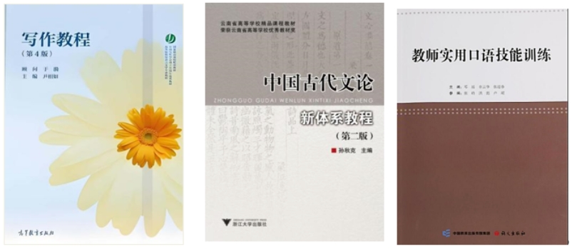 今年新增1部教材《教师使用口语技能训练》,目前使用的高级别自编教材有《写作教程》《中国古代文论新体系教程》等6部。
