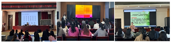 培训的最后,基地办公室主任邓瑶教授从语言建构与语用素养提升路径的角度,针对中小学教师语文教育教学能力的提升,开展了名为“从有意味的形式出发”的专题讲座。邓瑶教授结合理论和教学实际,围绕“语文教学如何提升学生的语言建构与运用核心素养”这一核心问题,从品词、析句、修辞以及语感、语理等综合维度,与在场的一线教师进行了深入的探讨交流。