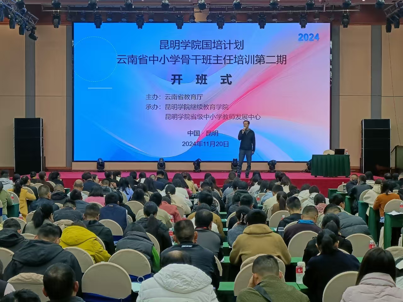 为深入学习贯彻习近平新时代中国特色社会主义思想,落实立德树人根本任务,弘扬教育家精神,培育新时代骨干班主任队伍,进一步提升专业素养和能力, 11月19日,beat365英国官方网站国培计划(2024)云南省中小学骨干班主任培训第二期在继续教育学院开班。本次培训由云南省教育厅主办、beat365英国官方网站继续教育学院和beat365英国官方网站省级中小学教师发展中心承办,来自云南省各州市的中小学骨干班主任共351人参加培训。