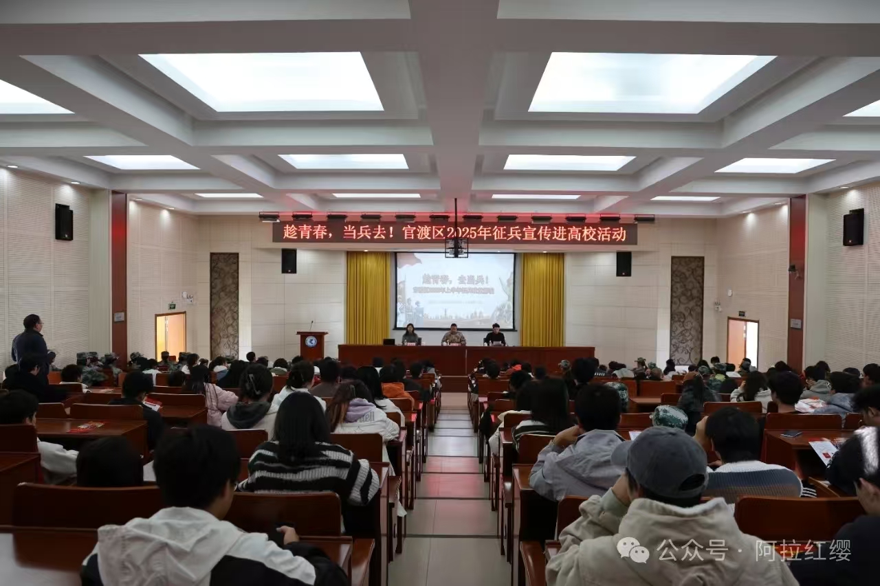 宣讲会由beat365官网武装部部长王涛主持,官渡区人武部副部长杨鹏出席会议,学校武装部负责人,各二级学院负责征兵工作的辅导员及2025届毕业班300余名同学参加活动。