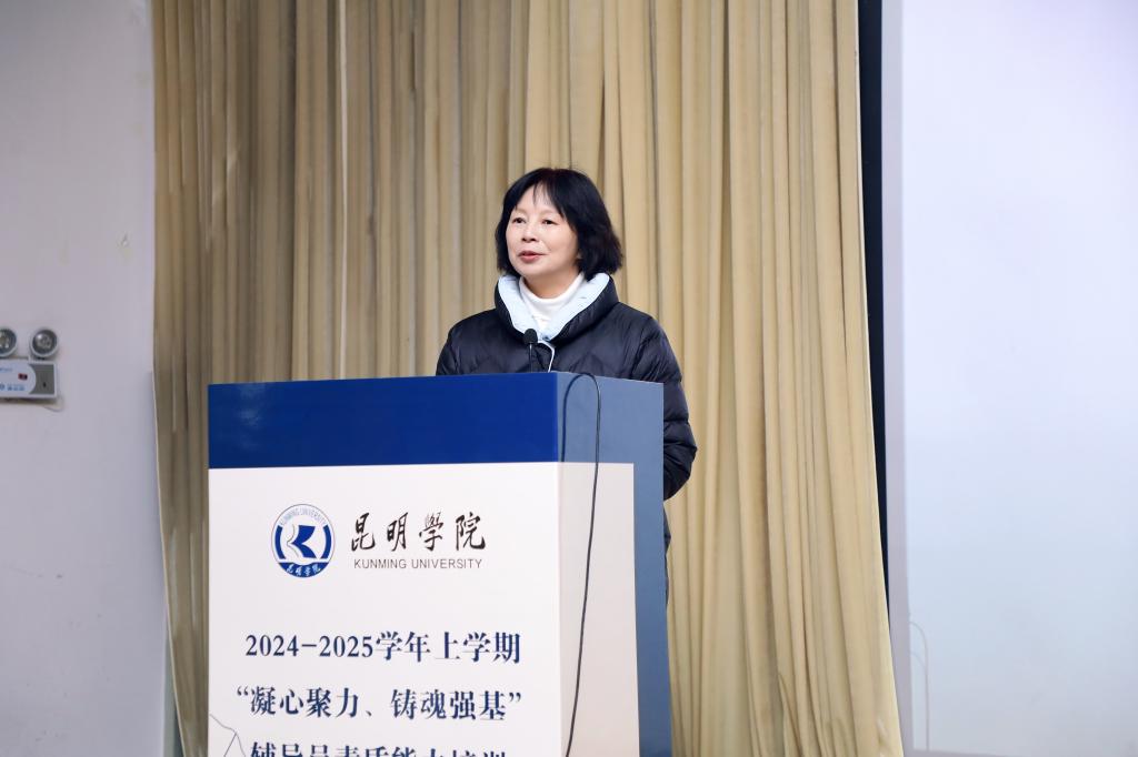 12月18日,beat365英国官方网站2024-2025学年上学期“凝心聚力、铸魂强基”辅导员素质能力第二期集中培训在博文楼3D报告厅举行。学校党委副书记李莉,各二级学院党委副书记、全体辅导员、学生处全体成员以及来自云南大学、云南财经大学、云南艺术学院、昆明医科大学等十所省内高校的60余名辅导员共计180余人参加培训。活动由学生处处长王涛主持。