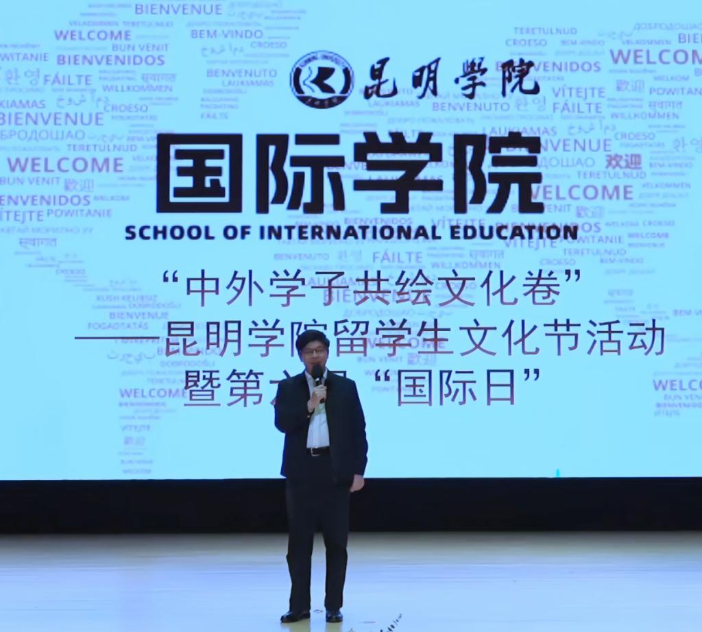 12月13日,“中外学子共绘文化卷”-beat365英国官方网站留学生文化节活动暨第六届“国际日”活动隆重举行。学校党委委员、副校长李剀、相关部门和学院领导、国际学院全体师生及中国学生代表参加活动。