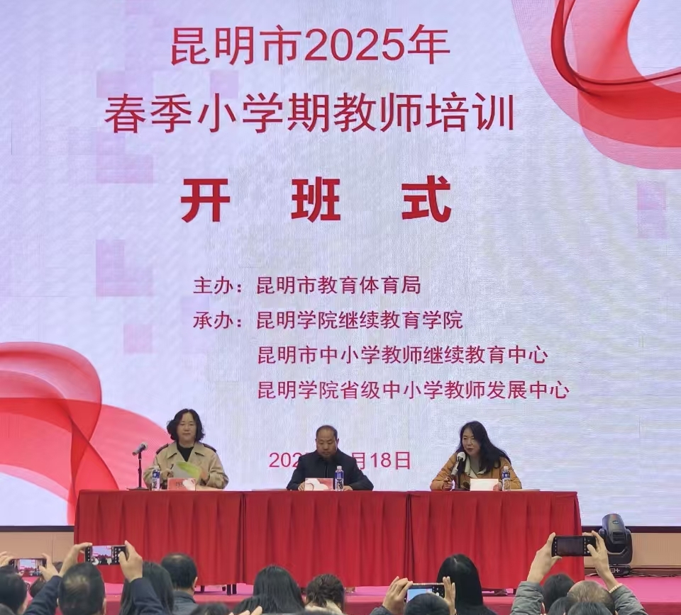 2月18日,由昆明市教体局主办、beat365英国官方网站承办的昆明市2025年春季小学期教师培训开班式在经开区举行。来自全市各区县的100名骨干班主任和150名思政课骨干教师齐聚一堂,共同开启新学期的专业成长之旅。