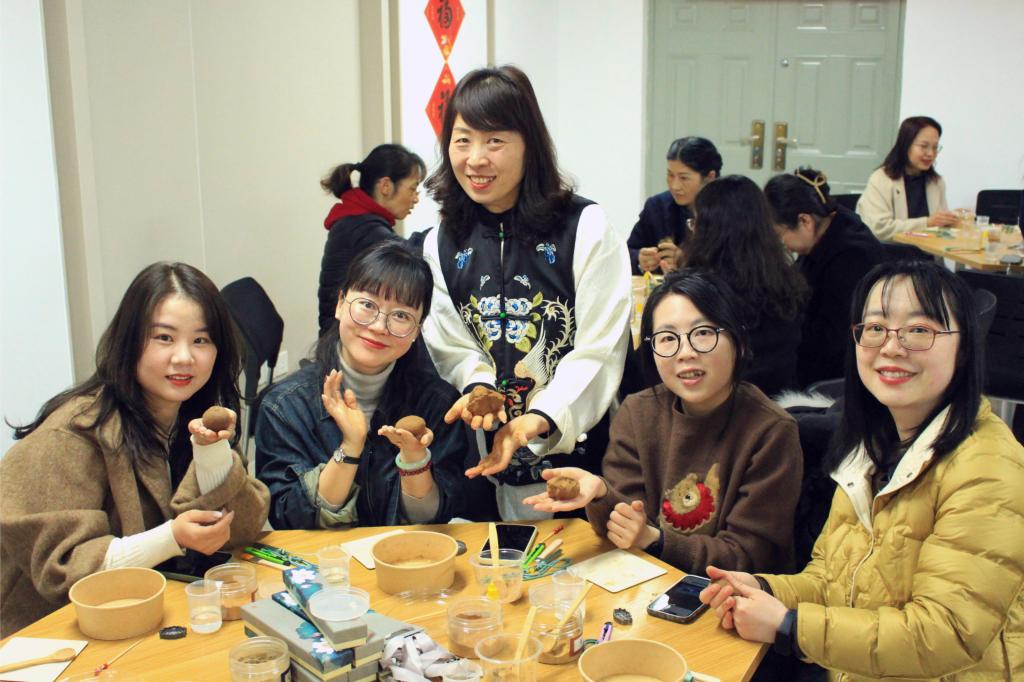 “古法香牌制作”非遗传承活动邀请专业老师为大家详细讲解了古法香牌的历史渊源、文化内涵以及制作工艺。在老师的指导下,女教师们纷纷动手体验,依据传统配方精心制作香料,大家边研习边动手,交流心得,欢声笑语不断,沉浸在手工制作的乐趣中。