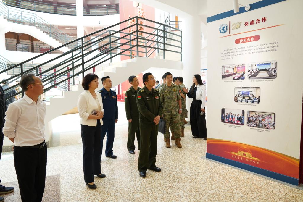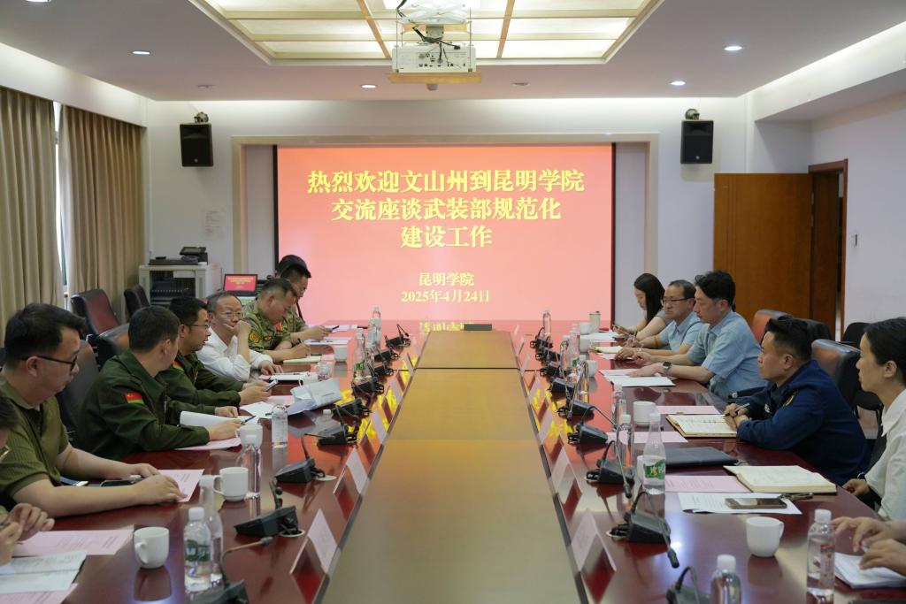 4月24日下午,文山军分区、文山学院、云南三鑫职业技术学院、文山职业技术学院等单位代表到校就高校武装部规范化建设参观交流。