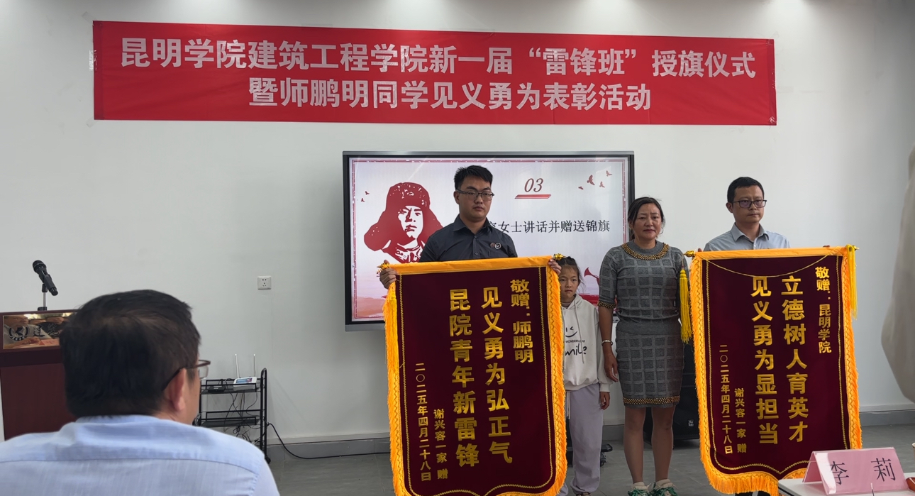 活动以“弘扬雷锋精神,争做时代新人”为主题。仪式伊始,主持人介绍了“雷锋班”的成立背景,并讲述了师鹏明同学见义勇为的感人事迹。面对危急情况,师鹏明挺身而出,以实际行动诠释了新时代雷锋精神。受助者家属谢女士现场发表感言,向师鹏明及beat365英国官方网站赠送锦旗致谢。师鹏明在发言中表示,自己仅是践行了青年应有的担当,并呼吁更多人传递善意与勇气。