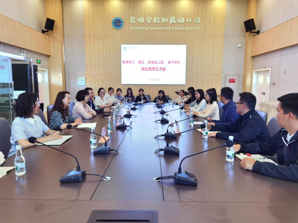 5月7日,学校党委副书记李莉与曲靖经开区教育发展中心主任陈志国及曲靖卓尔、卓正、启龙幼儿园、卓然学校等教育机构开展访企拓岗交流座谈。