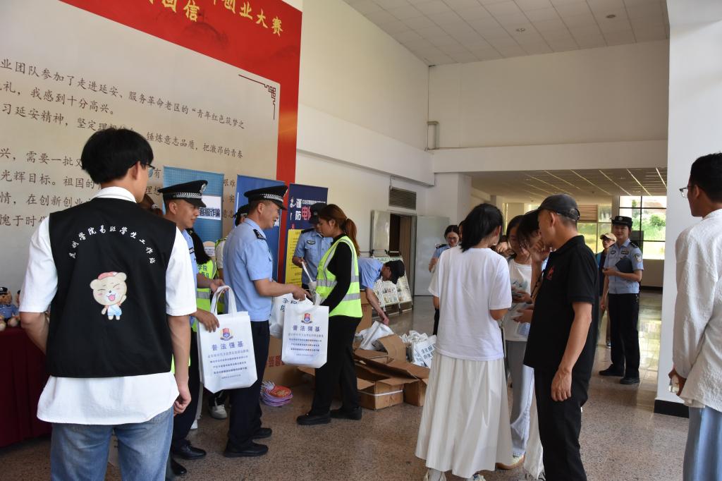 经开公安分局执法监督大队警官结合真实案例,深入剖析刷单返利、虚假征信等常见诈骗手段,并传授防范技巧。现场师生积极参与互动问答并庄严宣读反诈口号。讲座开始前经开公安分局民警向同学们发放反诈宣传手册和活动纪念品,