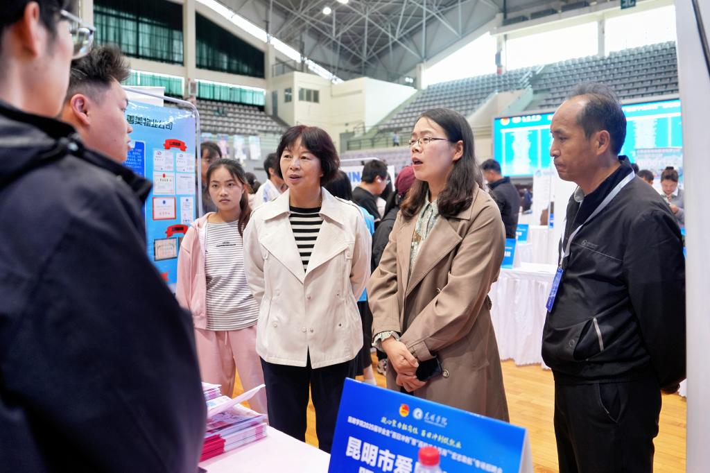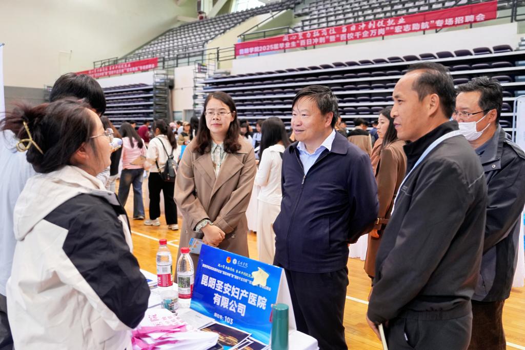 本次招聘会由beat365英国官方网站和昆明市妇女联合会共同主办,beat365英国官方网站招生就业处、团委、妇联共同承办,学校党委副书记李莉,党委委员、副校长彭志远,昆明市妇女联合会副主席栗艳红等领导到现场指导并与参会单位和毕业生亲切交谈。