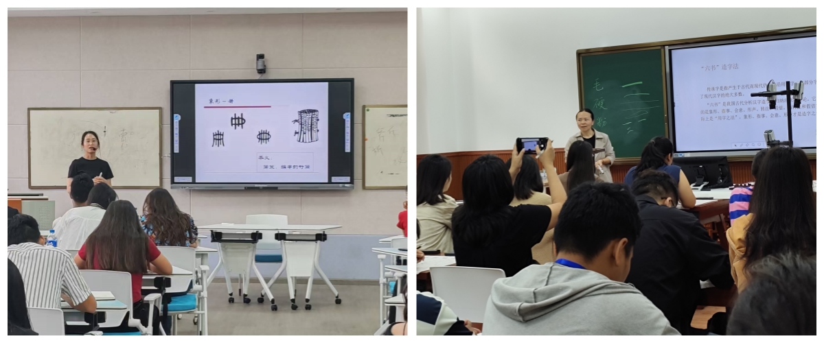 汉字作为世界上唯一延续数千年的表意文字,其字形不仅是记录语言的符号,更是一部镌刻中华文明的“活史书”。基地骨干教师邢华副教授从汉字构形原理、文化映射、现代价值三个维度向学员们解析了汉字字形背后的文化密码。书法课上,基地骨干教师冯佳老师的带领学员们汉字字形的魅力,在墨韵中体悟中华美学精神。