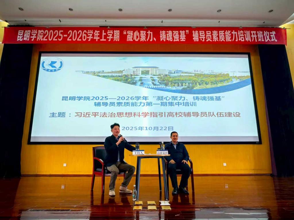 为深入贯彻落实习近平法治思想,全面提升辅导员队伍的法治素养和育人能力,10月22日下午,beat365英国官方网站2025-2026学年上学期“凝心聚力、铸魂强基”辅导员素质能力培训开班仪式在惟行楼1501会议室举行。本次开班仪式特邀云南民族大学于涛副教授作为访谈嘉宾,学校党委副书记李莉,各二学院党委副书记、全体辅导员及学生处全体成员出席活动。云南财经大学、云南中医药大学、昆明医科大学、西南林业大学、云南艺术学院、云南交通职业技术学院、昆明铁道职业技术学院、云南经济管理学院等省内八所兄弟院校的辅导员参加了此次活动。