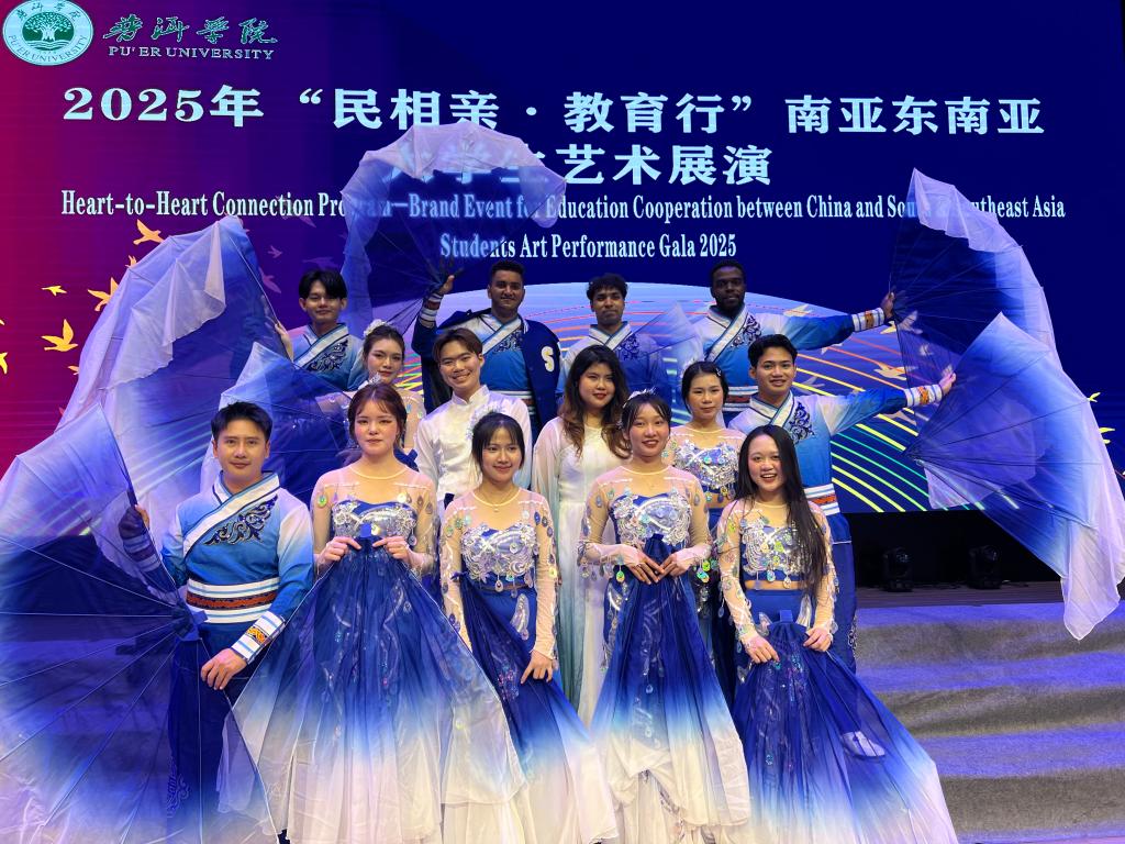 10月24日,beat365官网留学生代表参加在普洱学院举行的“2025年‘民相亲・教育行’南亚东南亚大学生艺术展演”活动。来自老挝、柬埔寨、乌兹别克斯坦、孟加拉国、乍得、也门和越南的14名留学生以歌舞演绎了云南经典民歌《小河淌水》,圆满完成演出任务。