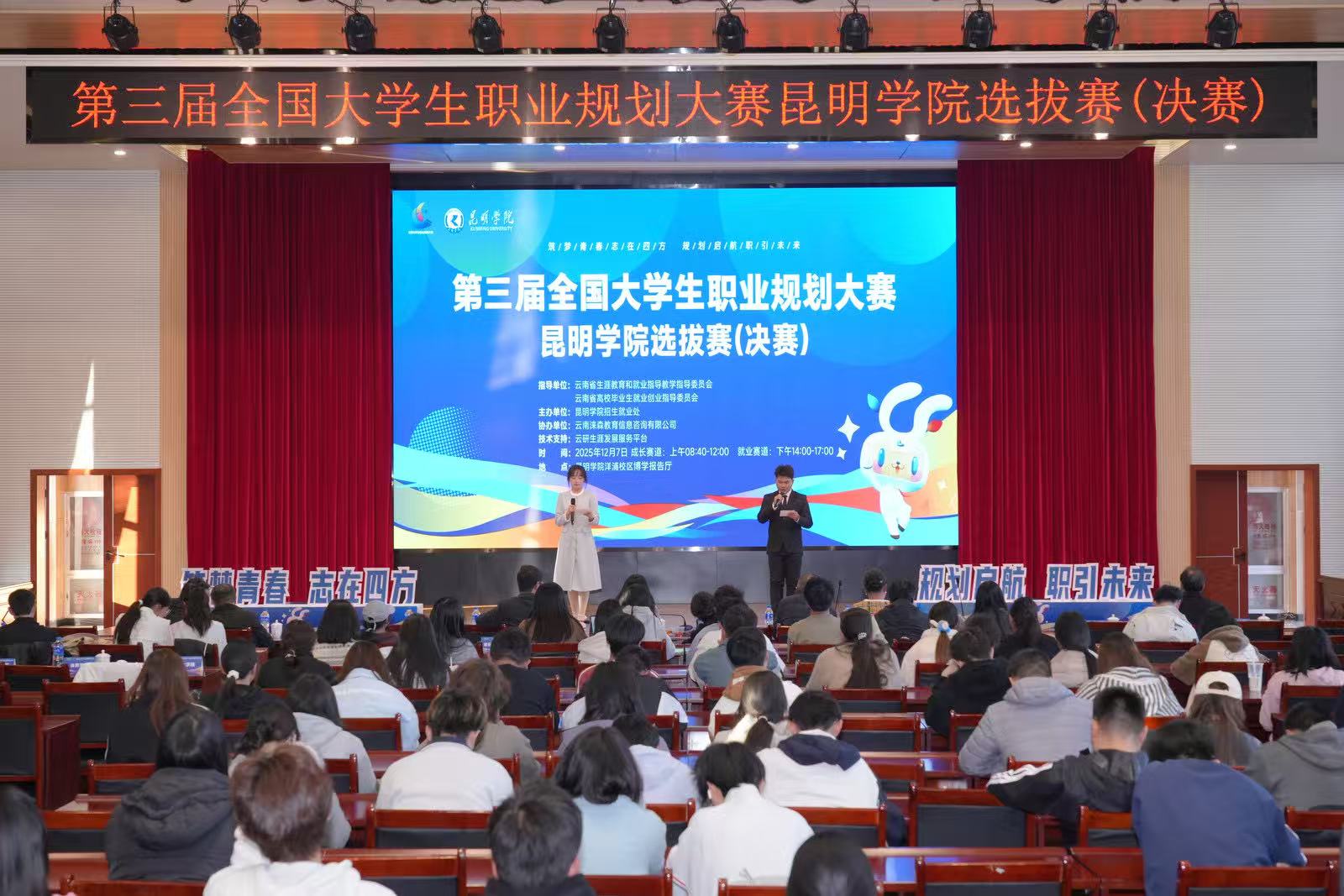 12月7日,第三届全国大学生职业规划大赛beat365英国官方网站校赛决赛在博学报告厅举办。云南省大中专毕业生就业服务中心杨宏伟主任,云南省生涯教育和就业指导教学指导委员会、云南省高校毕业生就业创业指导委员会的指导专家,学校招生就业处相关领导,就业指导服务中心全体教师,职业发展与就业创业指导课任课教师,各二级学院师生代表,近300人全程观摩了比赛。