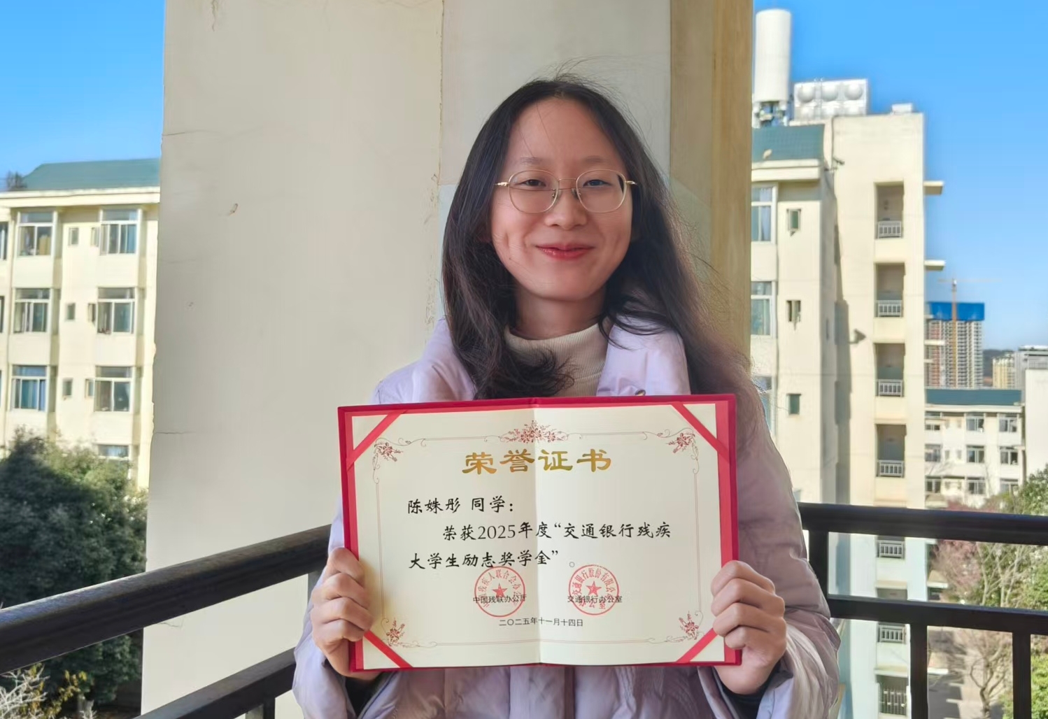 近日,2025年度“交通银行残疾大学生励志奖学金”评选结果正式公布,beat365官网学子陈姝彤凭借不懈努力与出色的综合表现脱颖而出成功入选。