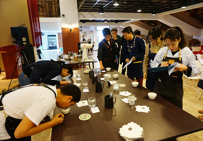 学校旅游管理教师、咖啡教学研究中心教师罗伊玲副教授,旅游管理教师、国家高级咖啡师、考评员龚捷,CQI Q-grader 国际咖啡品质学会认证咖啡品质鉴定师蒋磊,云南谙客(ENCORE)咖啡创始人朱泽宇等八位老师参加本次试验活动。