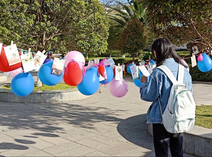 此次女生文化节活动分为三个部分,首先是“我想对你说”活动,该活动以师生在明信片或气球里给女生写祝福的方式在聂耳广场开展,众多师生参与此活动,并留下了他们对女生们的美好祝愿,活动旨在传递同学之间真挚的友情,培养同学互助、互敬的精神品质。是“记忆时光”分享驿站活动是在展板以及线上各平台分享beat365官网女同学们大学以来发生成长变化的照片和个人感想。 “关爱女生成长”知识宣传,主要宣传女生自我保护的方法和医学小常识,让女生在遇到危险或者小疾病的时候有足够的应对措施。