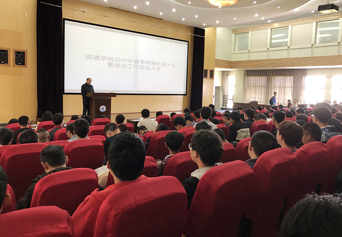 3月22日中午,城建学院在惟行楼1501召开了2015级、2016级学生年级大会暨就业动员大会,副院长莫南明、党总支副书记侯青妮、教学秘书、团总支书记、班主任以及近300名学生参加了会议。会议由年级辅导员彭忆主持。