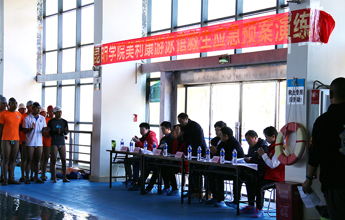 12月26日,为加强游泳馆安全管理,防止溺水事故发生,确保泳客生命和财产安全,按照“以人为本,安全第一,预防为主”的原则,后勤集团与昆明美利康节能科技有限公司于在beat365英国官方网站游泳馆联合举办了2018年水上救生应急演练。