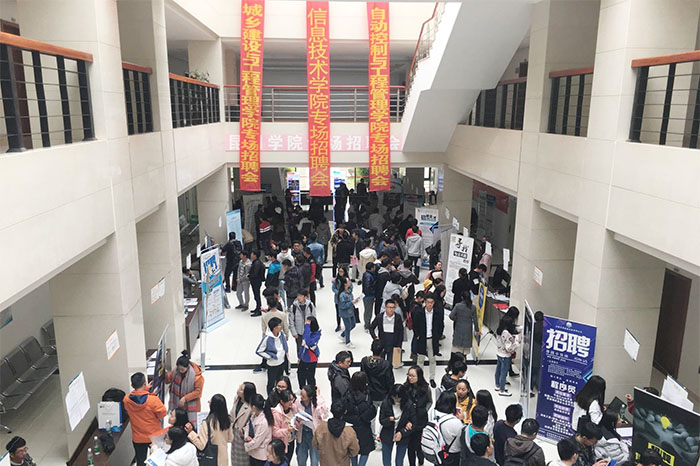12月14日,为帮助我院毕业生积极面对和解决就业问题,信息技术学院、城乡建设与工程管理学院、自动控制与工程管理学院在办公楼D区一楼大厅,共同主办“2019届毕业生专场招聘会”。信息技术学院党总支书记陶军、院长刘渝妍,2019届全体毕业生参加了招聘会。