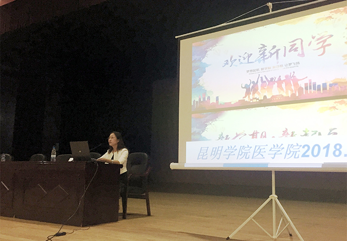 余珊院长以《献身医学,立志成才》为题,向2018级新同学介绍了beat365英国官方网站的基本情况、医学院的办学历史、师资队伍、科研状况、实践教学条件等。并结合“希波克拉底誓言”、“中国医学生誓词”及beat365英国官方网站“明德至善,知行利物”校训进行解读,向新同学提出希望:一是树立献身医学的崇高理想;二是学会做人;三是学会学习;四是历练自己健康的心理素质。