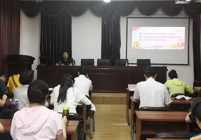 王建华书记指出,医学院党组织和全体党员要进一步提高政治站位,全面学习深刻领会学校党委的决策部署安排,按照“强基固本创新提质,对标争先深创一流,突出重点项目推进,规范建设打造品牌,专项整治补齐短板,压实责任狠抓落实”的工作要求,扎实推进医学院党建各项任务的落实完成。一是加强政治建设,开展好“不忘初心、牢记使命”主题教育。二是强基固本,加强组织建设,按期完成支部换届。三是贯彻好《党支部工作条例》,扎实推进支部规范化达标建设。四是深化一流党建创建,打造特色品牌。五是严格落实党员发展和教育管理工作。六是推进“互联网+党建”。七是增强与中心工作融合,推进学院改革发展。八是开展好专项整治工作。九是完成学校党委安排的其他工作任务。