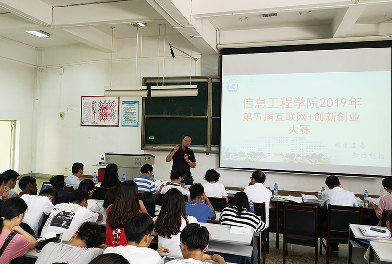 5月17日,为营造创业文化氛围,激发当代大学生的创业热情,提高信息学子的创业技能,扎实推进信息工程学院创新创业教育和大学生自主创业工作。信息工程学院在博识楼1001与博识楼1003两个会场同时举行信息工程学院第五届中国“互联网+”大学生创新创业大赛,45支队伍参加此次比赛。信息工程学院党总支书记陶军、院长刘渝妍参加活动。