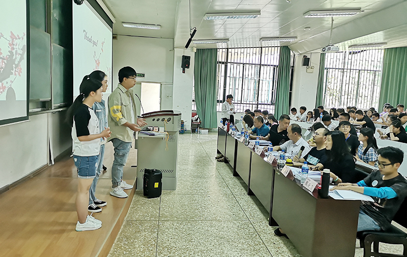主持人宣布比赛规则后,比赛就正式开始。本次比赛以PPT展示加提问答辩为主要形式,评委老师独立打分。比赛坚持严谨性、科学性、创新性的原则, 45支队伍的项目内容涉及“互联网+”服务医疗、“互联网+”信息技术服务、“互联网+”公共服务、“互联网+”公益创业和“互联网+”文化创意服务等方面,参赛者们激情满满地演讲,热情洋溢地展示着自己项目的创意来源、团队组建、产品研发、预期成果等各环节。评委老师结合每支队伍的项目给出了评价和建议。赛后,各组长作了点评,希望同学们通过大赛都有所收获,明年带来更好的作品。