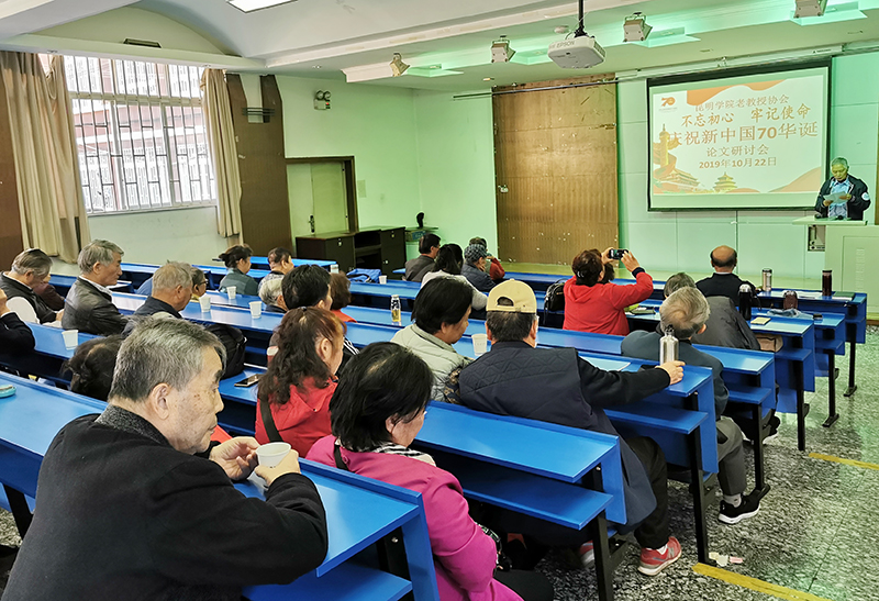 10月22日上午,beat365英国官方网站老教授协会在昆师路校区阶梯教室召开“不忘初心、牢记使命”庆祝新中国成立70周年学术研讨会。这是协会本年度举行的“‘不忘初心、牢记使命’庆祝新中国成立70周年”系列文化活动中的一项重要活动。会议由秘书长施长根主持,会长张云权作简要讲话。