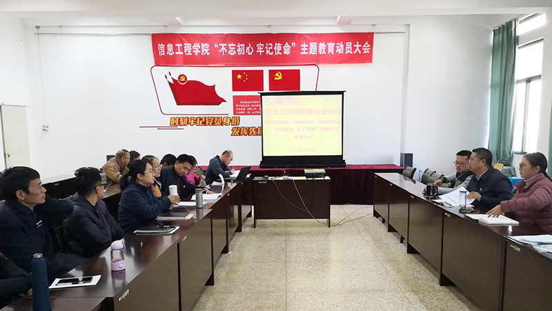11月22日,为传达学习贯彻党的十九届四中全会精神,提升党员的模范意识,弘扬革命传统精神,坚定理想信念,信息工程学院在惟实楼3201组织开展“不忘初心、牢记使命”主题教育专题学习活动,全体教师党员参加。