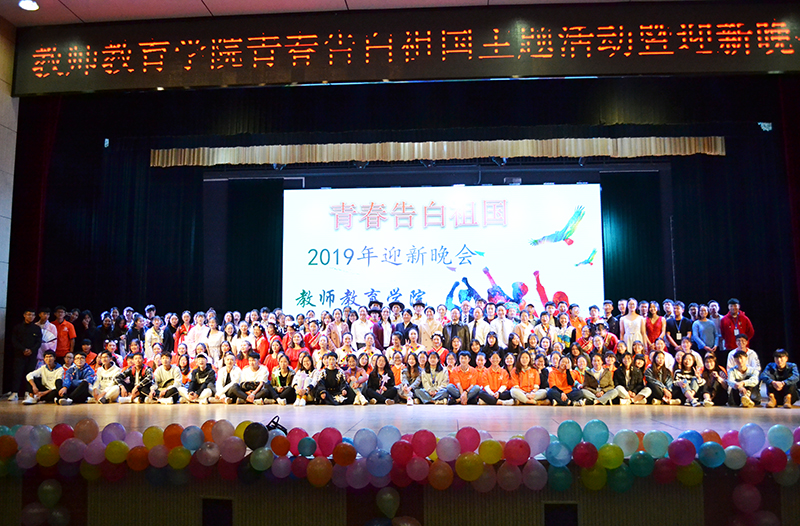 1122日,教师教育学院“‘青春告白祖国’庆祝新中国成立70周年主题活动暨2019年迎新晚会”在学生会堂成功举行,全院近700名师生及其他学院300多名同学参加。