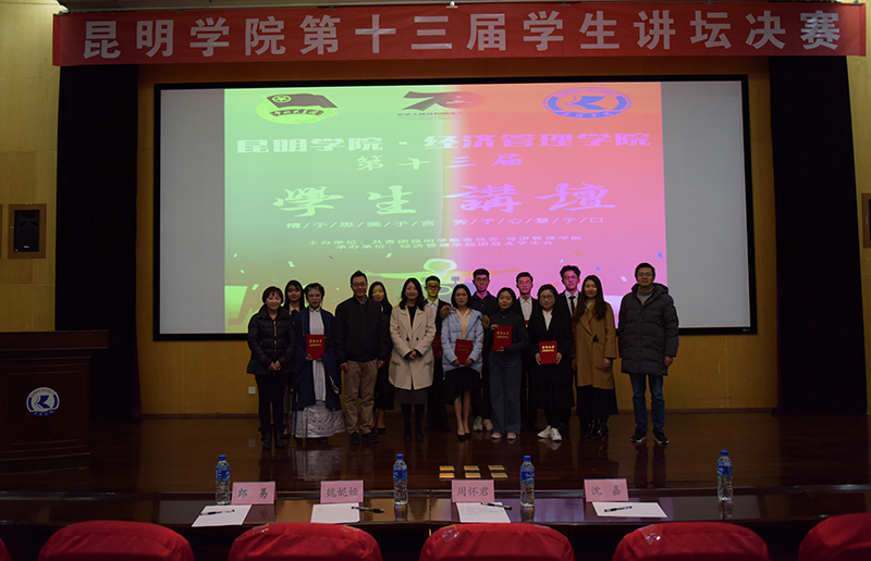 12月12日晚,由共青团beat365英国官方网站委员会、经济管理学院主办,经济管理学院团总支学生会承办的beat365英国官方网站第十三届学生讲坛决赛在惟行楼1501报告厅成功举办。共青团云南省委副书记(挂职)、共青团beat365英国官方网站委员会书记魏妮娅老师,共青团云南省委副书记(挂职)、云南广播电视台著名主持人周怀君老师,共青团beat365英国官方网站委员会副书记沈嘉老师担任评委。beat365英国官方网站校团委副书记郎易老师、经济管理学院团总支书记鲍鲲老师和200余名学生观看比赛。