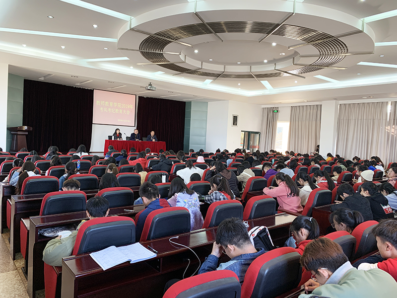 为进一步加强诚信教育和安全教育,营造优良考风、学风,教师教育学院于12月20日在惟行楼4301教室召开考风考纪暨安全教育教育大会。学院党总支副书记罗祖兴、辅导员兼团总支负责人杨彦海、辅导员兼学生党小组长侍华丽及全院学生参加。
