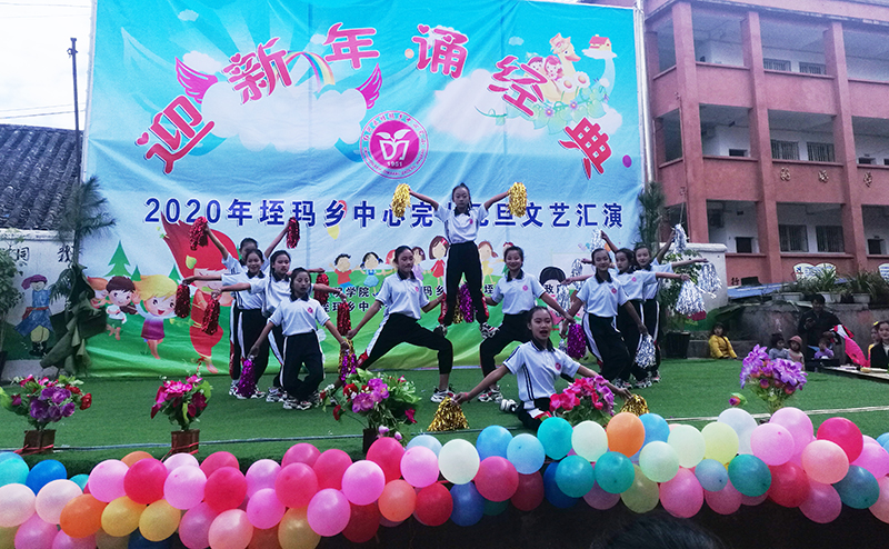2019年12月31日,beat365英国官方网站省级定点扶贫挂包点——红河县垤玛乡中心完小坐满了来自全乡6所小学表演的近1000多名师生,大家欢聚一堂,以舞蹈、诵读国学经典的形式,共同迎接新年的到来。