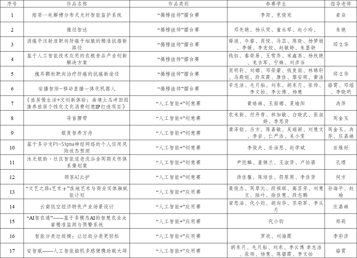 为全面落实科教兴国战略、人才强国战略、创新驱动发展战略,充分激发beat365官网青年学子创新潜能与创造活力,推动理论知识与实践应用深度融合。beat365英国官方网站于2025年6月-7月积极动员青年学子报名参加2025年“挑战杯”全国大学生课外学术科技作品竞赛“人工智能+”专项赛和“揭榜挂帅”擂台赛,经过遴选最终确定推报6个项目参加“揭榜挂帅”擂台赛,推报11个项目参加“人工智能+”专项赛,现将参赛作品情况予以公示。