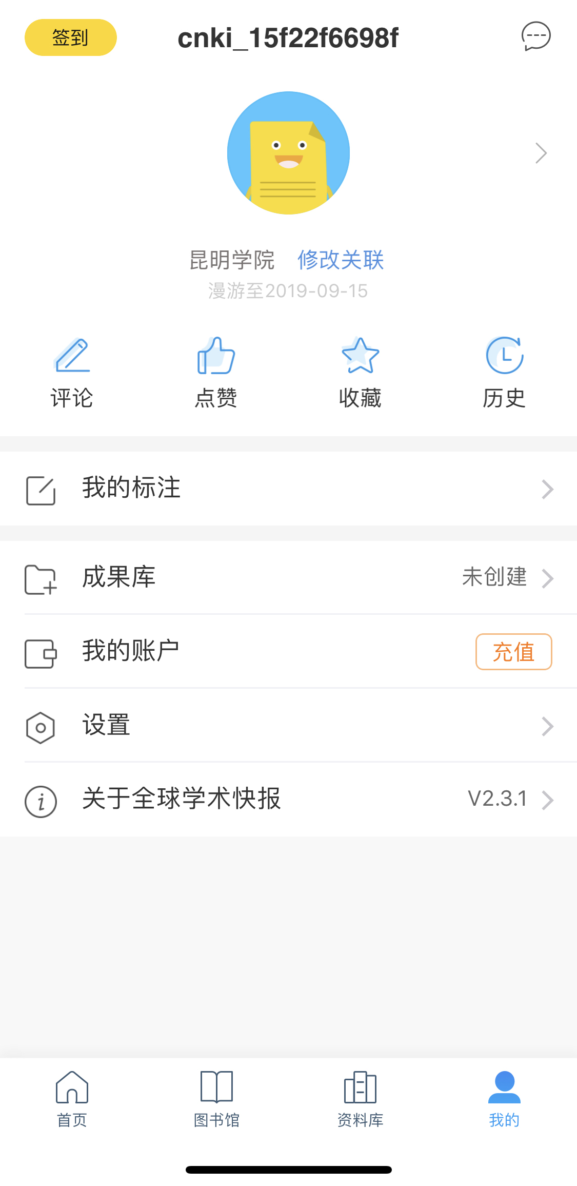 1.下载安装中国知网移动APP—全球学术快报,没有安装的用户可扫描下面的二维码;下载后可直接登录知网账号或手机号注册,注册成功并且登录。