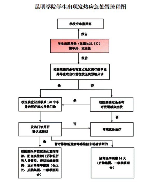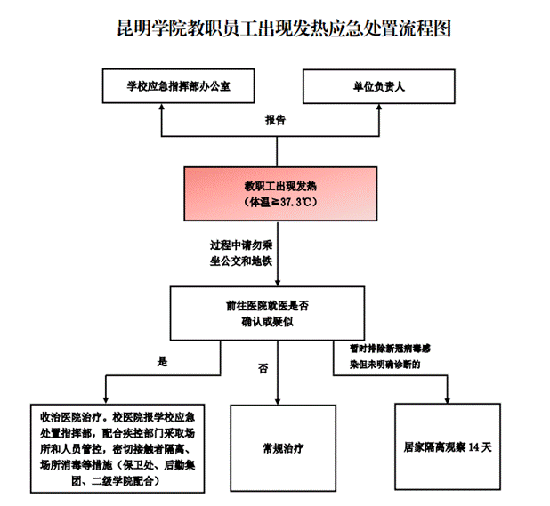 (2)若体温检测后异常的,需进行二次体温检测。宿舍值班人员第一时间向相关部门报告,安排学生在等候区等候,同时请校医院派遣医务人员前来处置。