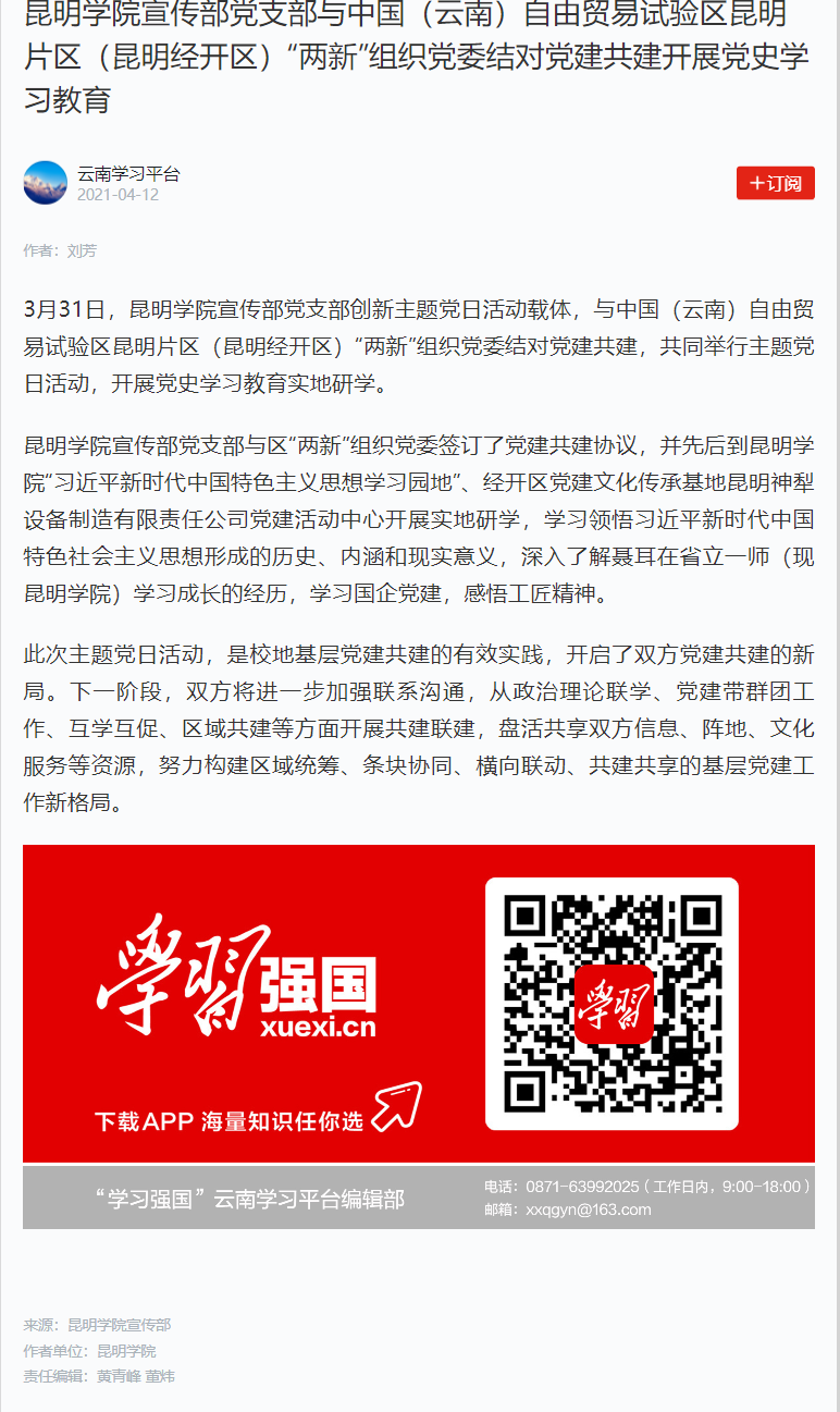 beat365英国官方网站宣传部党支部与中国(云南)自由贸易试验区昆明片区(昆明经开区)“两新”组织党委结对党建共建开展党史学习教育