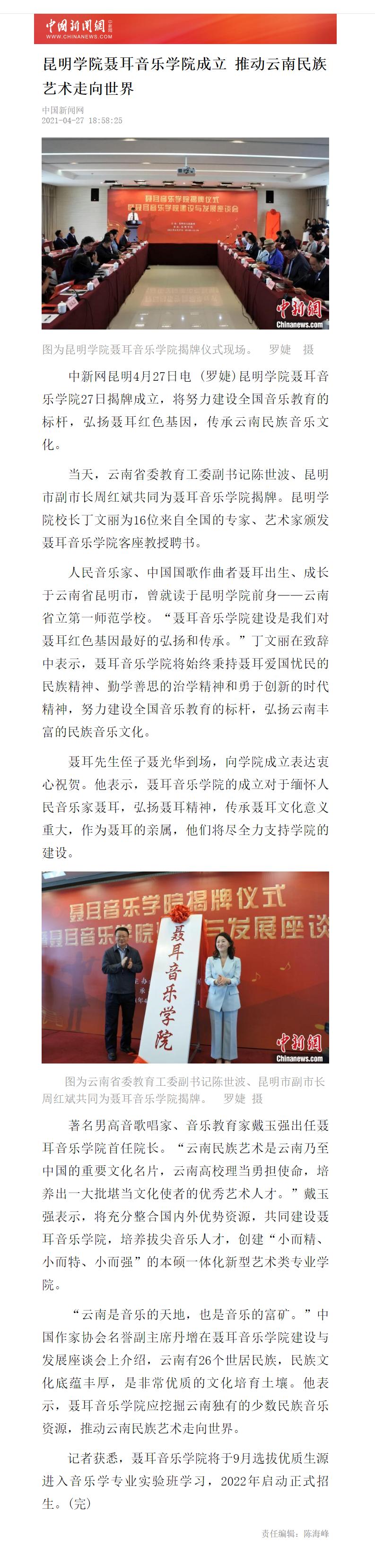 beat365英国官方网站聂耳音乐学院成立 推动云南民族艺术走向世界