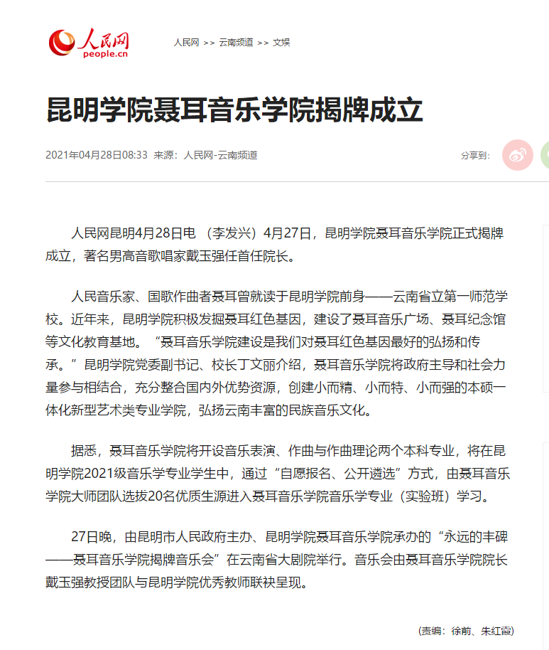 beat365英国官方网站聂耳音乐学院揭牌成立