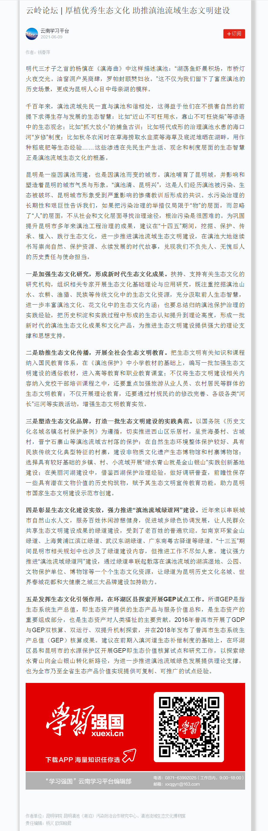 云岭论坛 | 厚植优秀生态文化 助推滇池流域生态文明建设