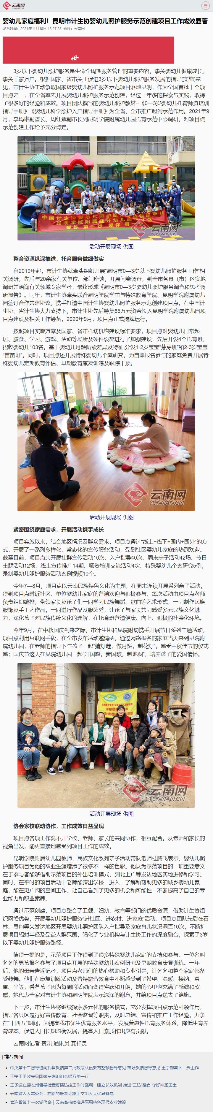 婴幼儿家庭福利!昆明市计生协婴幼儿照护服务示范创建项目工作成效显著