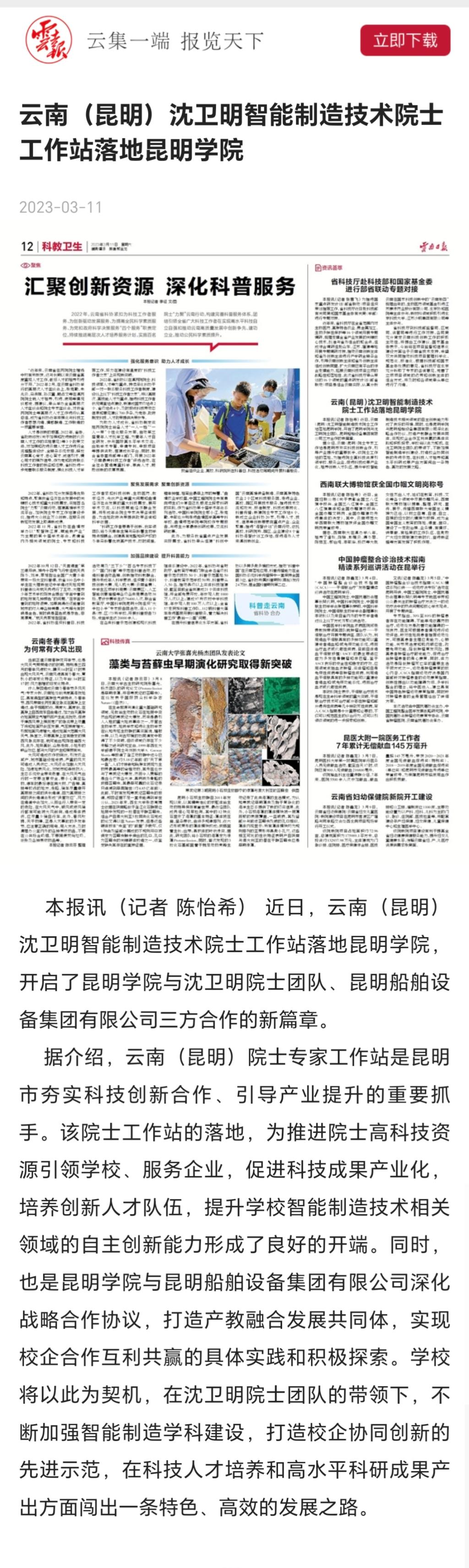 云南(昆明)沈卫明智能制造技术院士工作站落地beat365英国官方网站