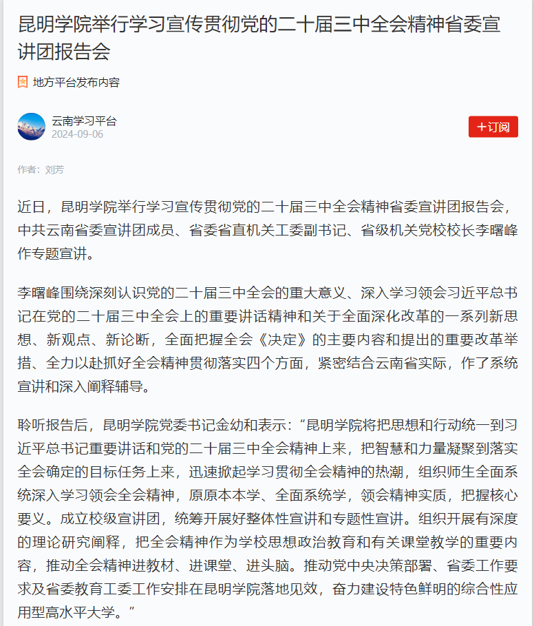 beat365英国官方网站举行学习宣传贯彻党的二十届三中全会精神省委宣讲团报告会