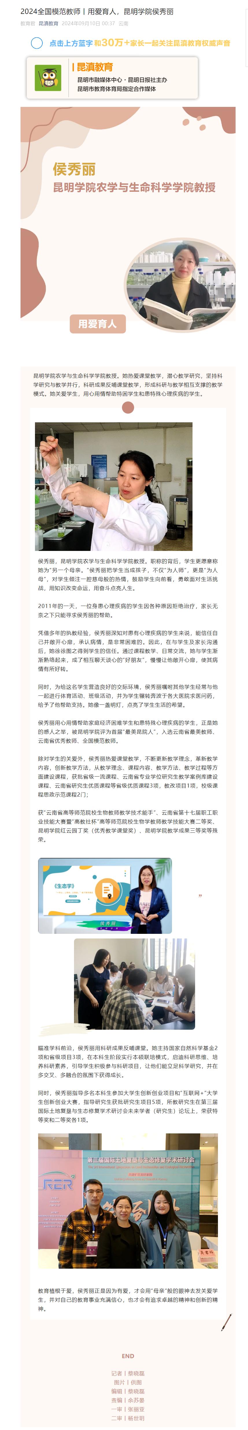 2024全国模范教师丨用爱育人,beat365英国官方网站侯秀丽