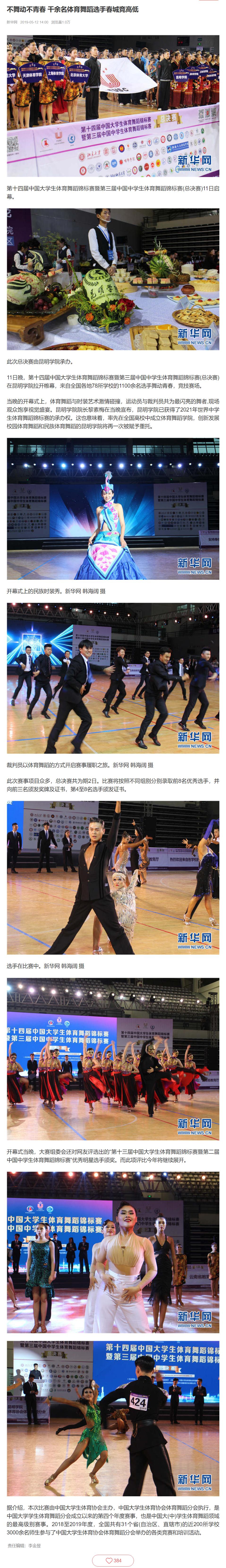 不舞动不青春 千余名体育舞蹈选手春城竞高低