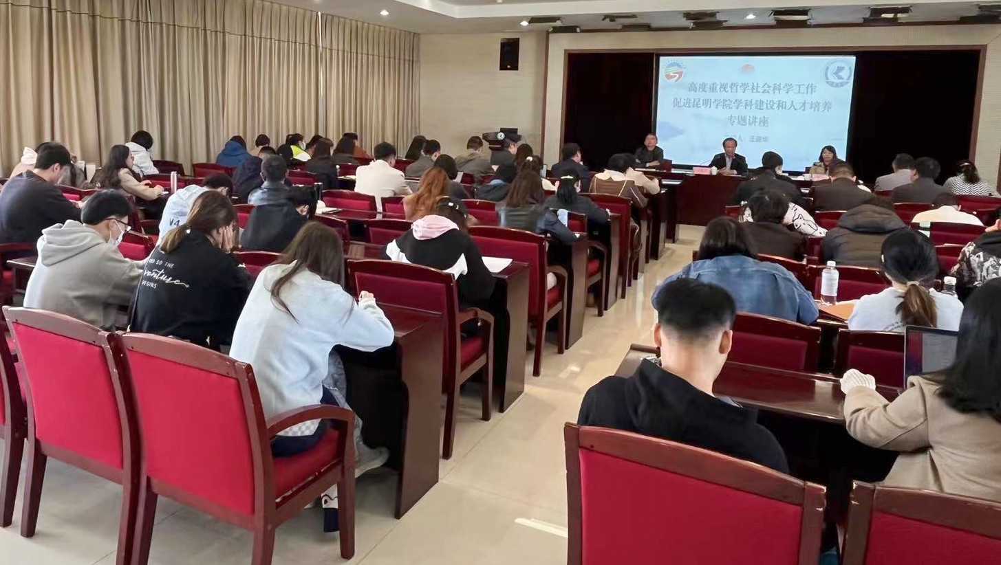 10月18日上午,云南省社会科学联合会副主席王建华应邀到beat365官网作题为 “高度重视哲学社会科学工作促进beat365英国官方网站学科建设和人才培养”专题讲座。讲座由校长丁文丽主持,副校长马银海,科学技术处及各二级学院党政主要负责人、分管科研工作副院长、科研秘书、科研人员代表参加。