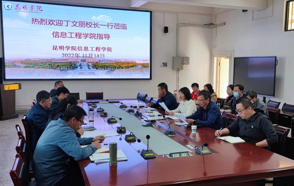 11月14日,校长丁文丽、副校长马银海到信息工程学院调研指导2023年国家自然科学基金项目、团队建设、省级奖项申报、产业学院建设等工作。科学技术处相关负责人、信息工程学院党政领导班子、科研团队负责人及科研骨干教师参加调研。会议由信息工程学院副院长王宇娇主持并汇报了学院科研相关工作情况。