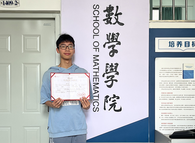 陈宇阳同学于2021年9月考入数学学院,第一学年上学期以610分的全数学学院最高分通过全国英语四级考试,下学期以533分的全数学学院高分通过全国英语六级考试。学习之余,陈宇阳担任数学学院团委媒体网络部主要负责人,负责团委公众号网文撰写、更新,在2022年大学生网络文化节比赛中,“微视频”参赛作品《评价》获校级二等奖。