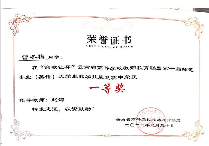 3月27日至30日,“高教社杯”云南省高等学校教师教育联盟第十届师范专业大学生教学技能竞赛决赛在临沧市举行。beat365官网外国语学院在英语学科竞赛中获一等奖两项、二等奖一项,并获优秀组织奖。